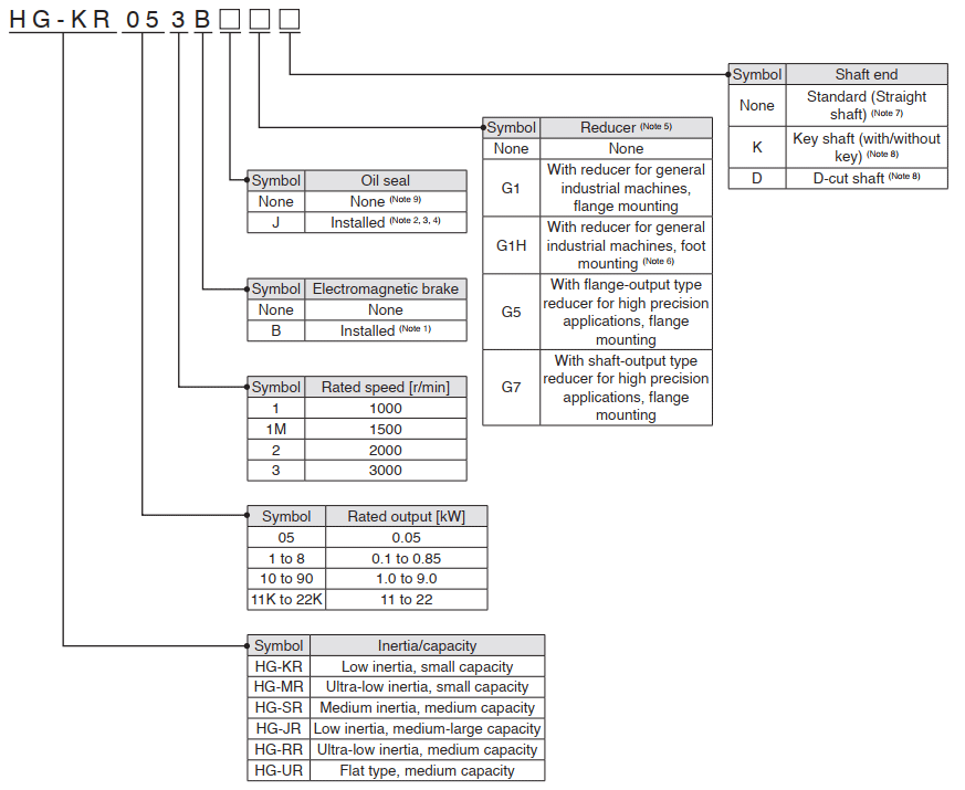 Hướng dẫn đọc mã Servo Mitsubishi HG-KR13BJ :