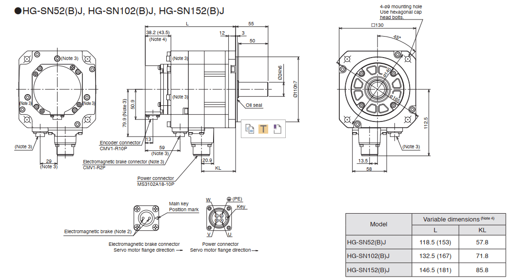 Thông số kỹ thuật của Servo Motor HG-SN102: