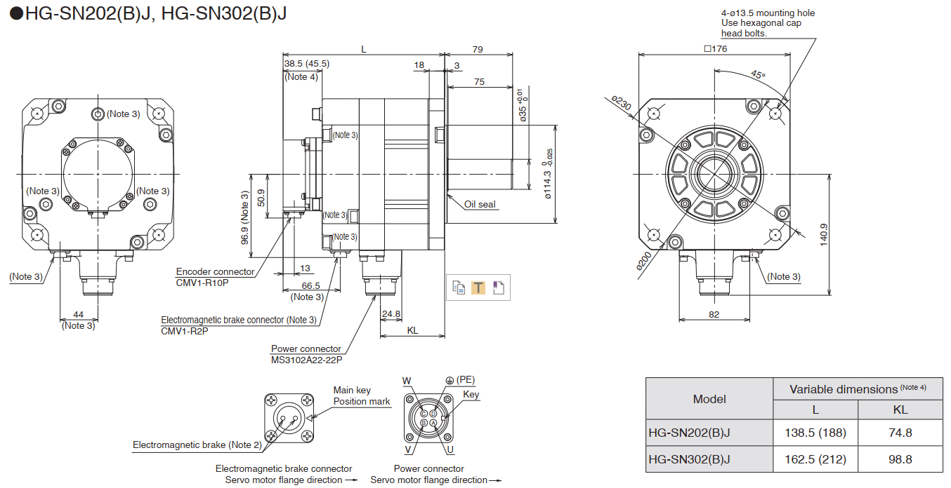 Thông số kỹ thuật của Servo Motor HG-SN302BJ: