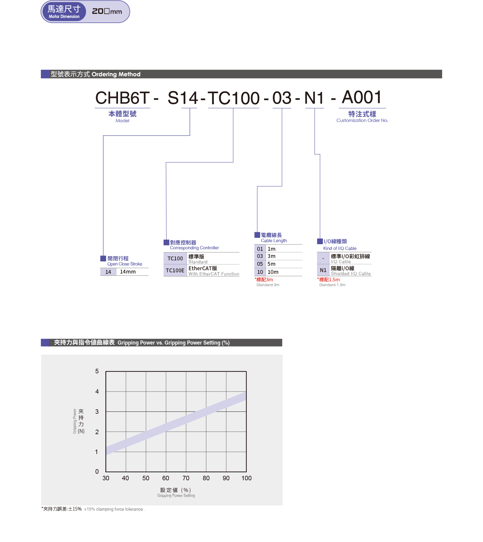• Phạm vi lực kẹp:1.2~4(30-100%)(N)