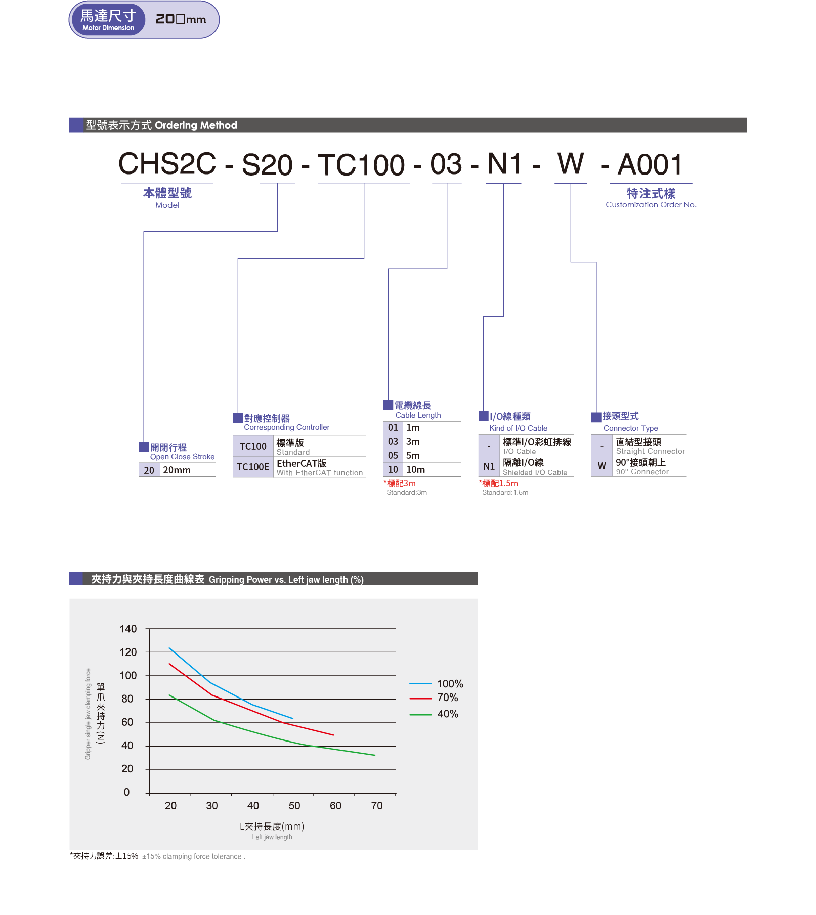 • Phạm vi lực kẹp:20-124(15-100%)(N)